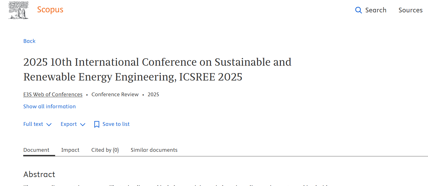ICSREE 2025 Proceedings is published in Volume 636 (2025) of E3S Web of Conferences(ISSN: 2267-1242). (Online Linkage)